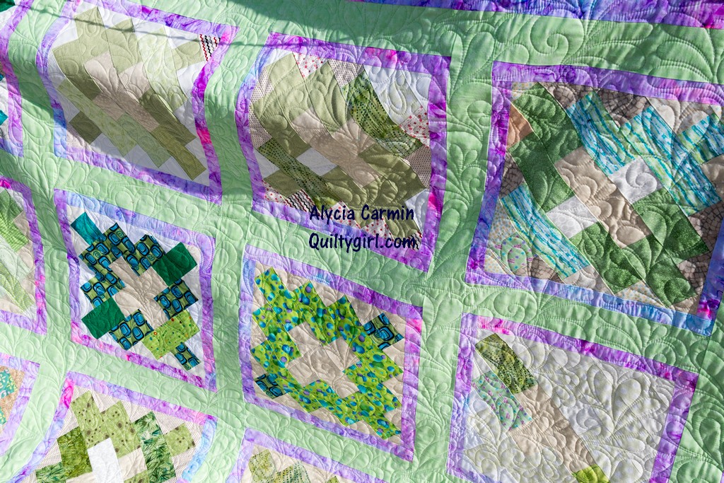 Before I even knew that Purple was the Rainbow Color of the Month I had already picked out purples to accentuate this - and I was so glad.... I used the cut offs of the backings for my churn dashes -
